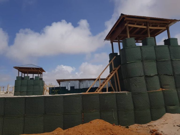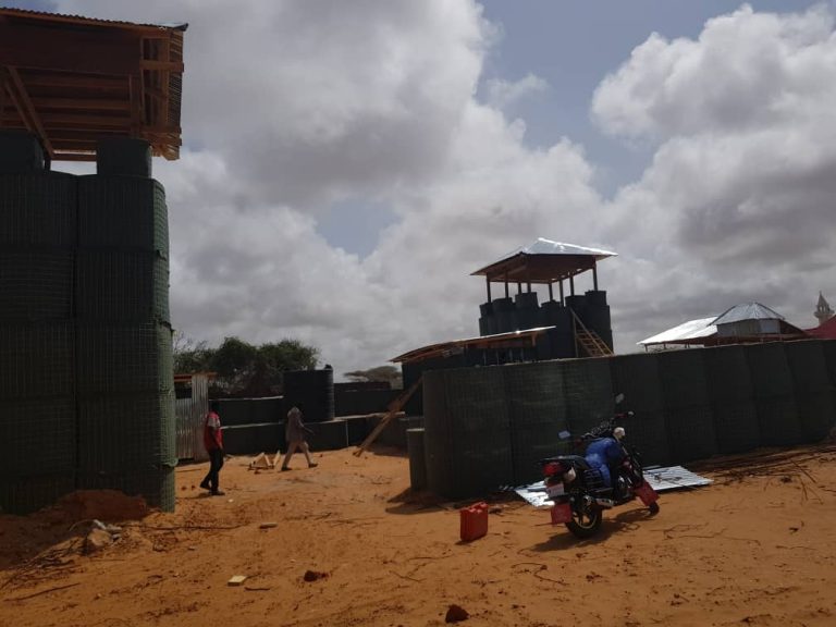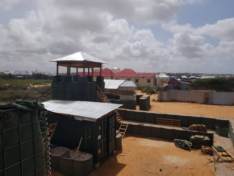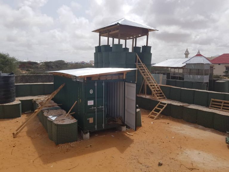Construction of HESCO perimeter fence (22m x 21m ), Two watch Towers, One temporary latrine with 2 stances, installation of 20Ft container including OHP and installation of elevated water tank at Somali Police FOBs checkpoints for Ali Janaale, Foorilow, Daarasalam, Dayniile and Barwaaqo.